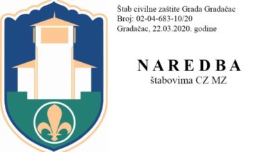 Na današnjoj drugoj sjednici Štaba civilne zaštite Grada Gradačac donešene su 3 naredbe i 4…
