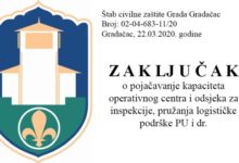 Na današnjoj drugoj sjednici Štaba civilne zaštite Grada Gradačac donešene su 3 naredbe i 4…